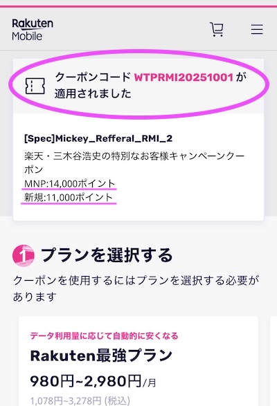 三木谷会長キャンペーンのクーポンコードは【WTPRMI20251001】だよ。